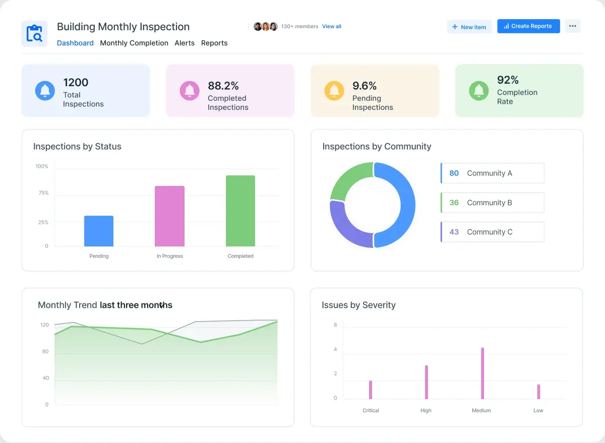Kissflow simplifies inspection management by centralizing scheduling, execution, and tracking in one platform. Teams can standardize inspection processes, capture findings digitally, and monitor progress across communities with real-time visibility.